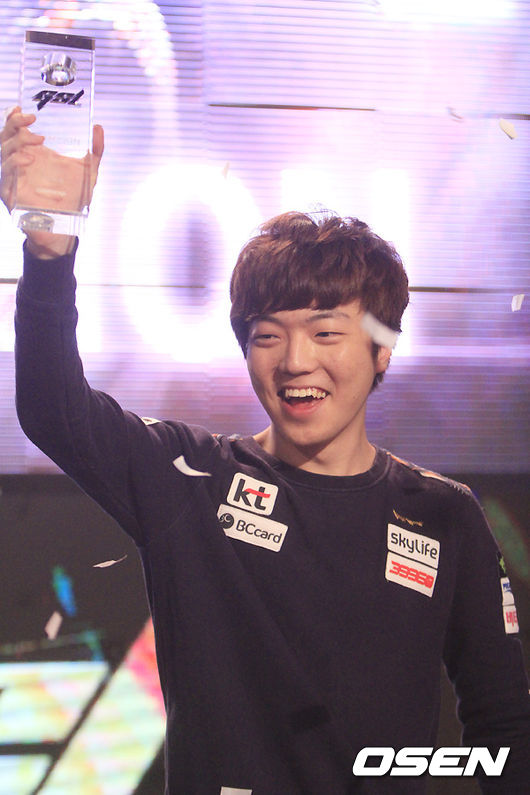 원이삭과 아슬아슬했던 접전에 대해 그는 "1세트는 뭔가 느낌이 왔다. 연습때 가지 않았는데 감이 왔다. 운이 좋았다. 광자포 러시도 생각 못했다. 맞춰가는 걸 평소에 잘해서 그대로 했는데 잘 풀렸다. 3세트는 조금 아쉬웠다. 조금 더 천천히 오버로드로 유인한 다음에 들어갔으면 4-0도 만들 수 있을 것 같았다. 결승전 컨셉트를 '바드라'로 잡았다. 프로토스는 시간이 갈수록 강해지기 때문에 초중반에서 끝내기 위해서 노력했다"라고 결승전에 대해 말했다.