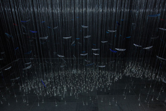 마지막으로 옥현숙의 '바다와 숲에 대한 명상 – 은빛 물고기'는 광섬유를 촘촘히 채우고 그 안에 가죽 물고기 구조물 50여 개를 설치했다. 마치 바다 속을 자유롭게 뛰어 노는 물고기를 연상시키며 시각적 즐거움을 선사하는 이 작품은 어떤 집착과 얽매임도 없는 완전한 자유를 가진 '가죽 물고기'라는 미디어를 통해 0914의 자유분방함을 표현하고자 했다.