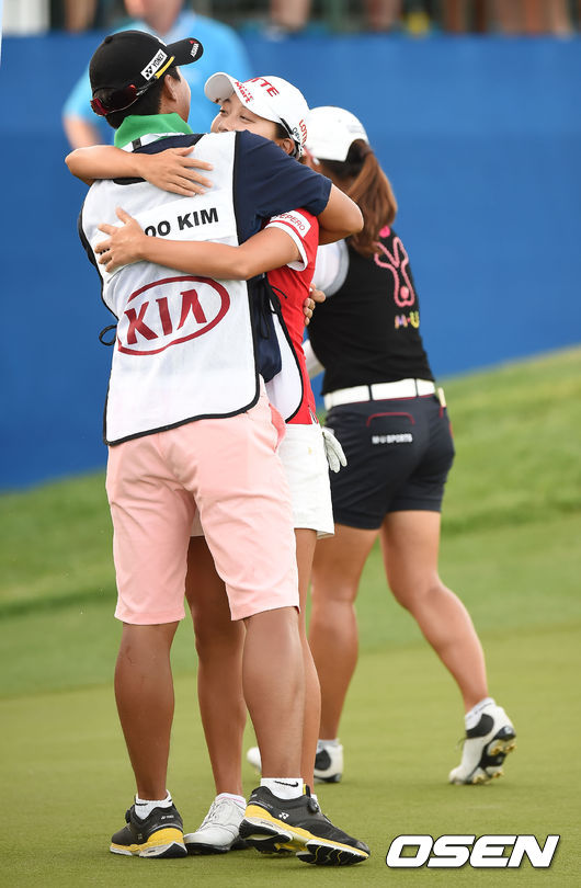 우승을 거둔 김효주가 캐디와 포옹을 하고 있다. / youngrae@osen.co.kr