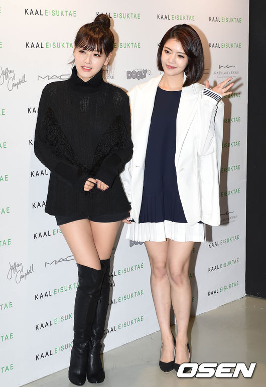 23일 오후 서울 중구 동대문디자인플라자(DDP)에서 열린 '2015 F/W 서울패션위크' 이석태 컬렉션에서 재경, 윤혜가 포토타임을 갖고 있다.