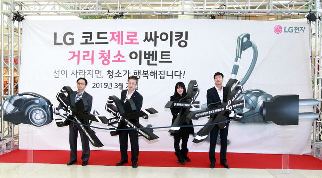 LG전자는 24일 서울 영등포구 타임스퀘어 및 인근 지역에서 프리미엄 무선 진공청소기 ‘코드제로 싸이킹’으로 실내와 거리를 청소하는 이벤트를 열었다.