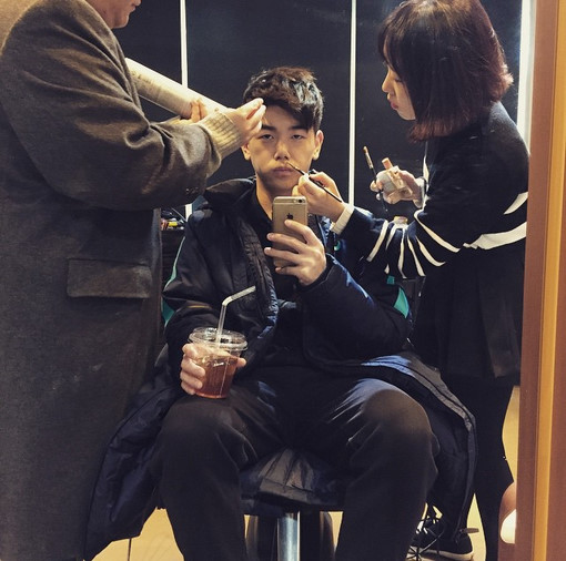 공개된 사진 속 에릭남은 메이크업과 헤어 손질을 받으며 앉아 거울에 비친 자신을 찍고 있는 모습이다. 특히 그는 이른 아침 스케줄에 뿔난 듯 뾰루퉁한 표정으로 보는 이들의 웃음을 자아낸다.