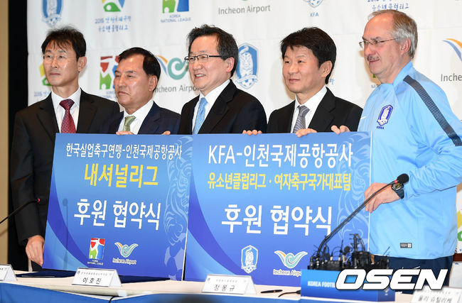 파주 축구국가대표팀 트레이닝센터(NFC) 본관에서 개최된 이날 협약식은 이호진 인천공항공사 부사장과 정몽규 (사)대한축구협회 회장, 김기복 (사)한국실업축구연맹 부회장, 슈틸리케 남자축구 국가대표팀 감독, 윤덕여 여자축구 국가대표팀 감독이 참석한 가운데 진행됐다.