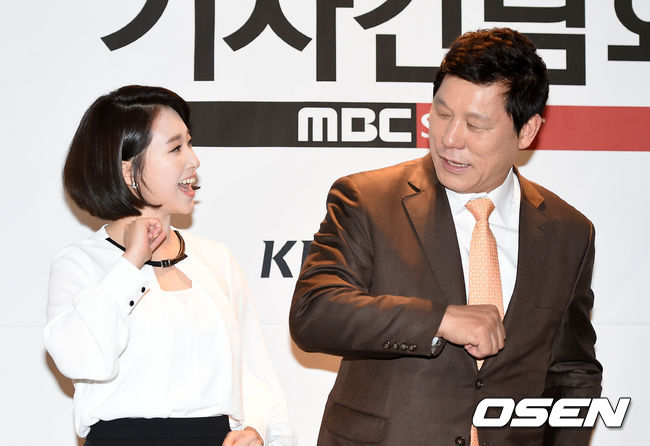 김선신 아나운서, 허구연 해설위원이 포토타임을 하고 있다.