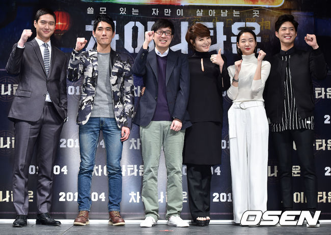 24일 오후 서울 압구정 CGV에서 열린 영화 '차이나타운' 제작보고회에서 단체 포토타임이 진행되고 있다.