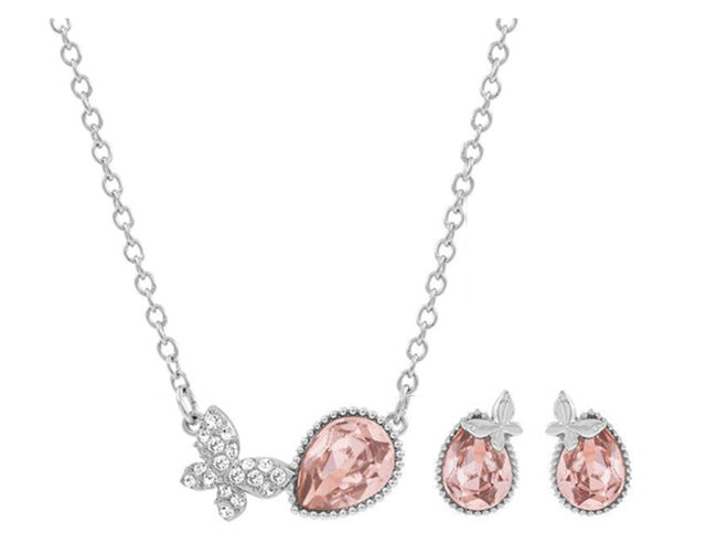 신데렐라의 아름다움에서 영감을 얻은 신데렐라 ‘Cinderella 주얼리 세트’는 우아한 나비 모티브와 로맨틱한 핑크 크리스털이 돋보이는 제품으로, 여성스럽고 사랑스러운 이미지 연출이 가능하다.
