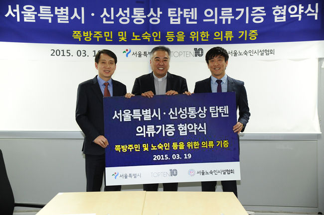 감각적이면서도 베이직한 아이템을 제안하는 ㈜신성통상(대표이사 염태순)의 탑텐(TOPTEN)이 서울특별시와 협약식을 갖고 어려운 이들을 위해 의류를 기부한다고 24일 밝혔다.