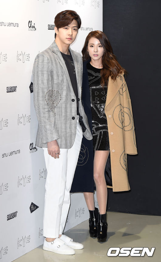 가수 천둥과 투애니원 산다라박이 포토타임을 갖고 있다.