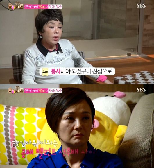 이에 김자옥은 “그건 고민거리가 아니라 살아가는 과정”이라며, “나도 내 주변에 내 나이또래가 최근에 돌아가신 분이 김자옥 씨다. 내 가까운 나이 또래에 죽음을 보게 되니까, 인생 마무리를 잘 해야겠구나 생각이 들었다”고 차분하게 말했다.