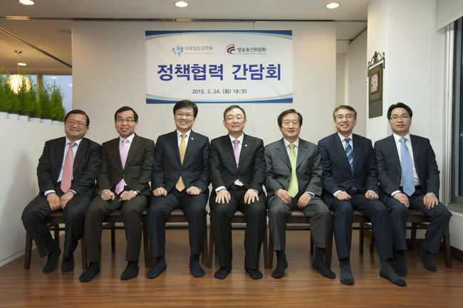미래부와 방통위는 24일 과천 정부청사 인근 식당에서 미래창조과학부 장․차관과 방송통신위원회 위원장 및 상임위원을 비롯한 양 부처실․국장이 참석한 가운데 만찬을 겸한 간담회를 개최했다.