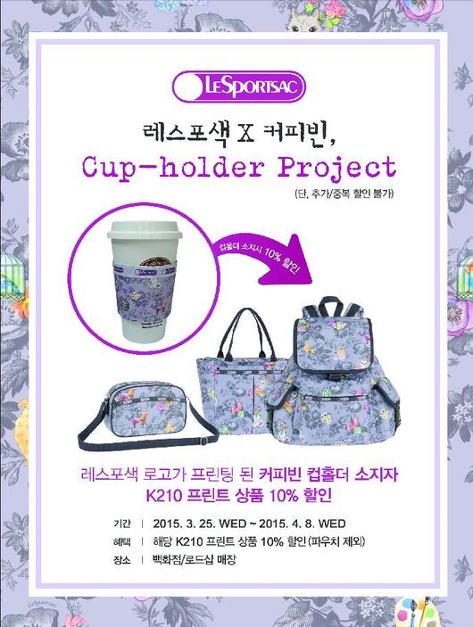 레스포색 (LeSportsac)이2015년 봄을 맞아 커피빈(Coffee Bean)과 함께 컵 홀더 프로젝트를 진행한다.