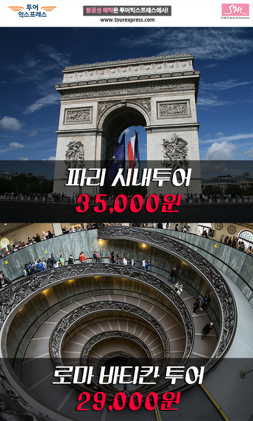 투어익스프레스는 25일 하루동안 한국인 가이드의 설명이 포함된 파리 시내투어 및 로마 바티칸 투어 상품을 초특가로 제공한다고 밝혔다.