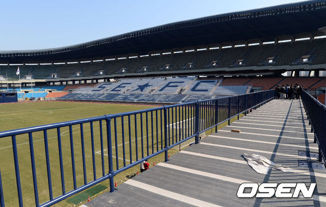 25일 오전 서울 송파구 올림픽로 서울 이랜드 FC 홈경기장인 잠실주경기장 '레울(Leoul) 파크' 공개 미디어데이가 열렸다.