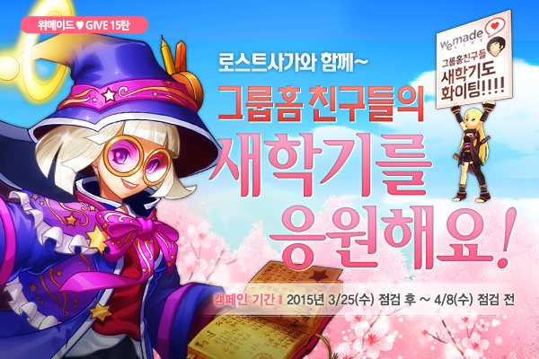 4월 8일까지 진행되는 ‘위메이드 GIVE15탄’은 신학기 시즌을 맞아 ‘그룹홈’ 친구들의 새 학기를 응원하는 캠페인이다. ‘로스트사가’의 아이오 계정 접속자들에 한해 후원 가능하다.