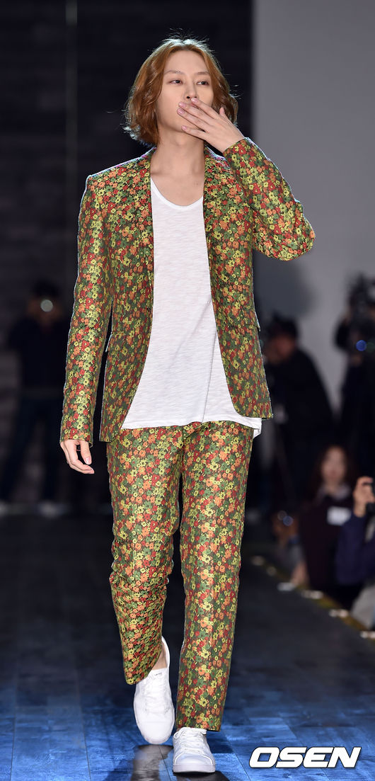 25일 오후 서울 강남구 청담동 드레스 가든에서 열린 KBS 2TV '어 스타일 포 유(A Style For You)' 제작발표회서 김희철이 키스를 날리며 워킹을 하고 있다.