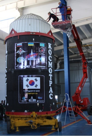 다목적실용위성 3A호를 탑재하고 발사대기 중인 드네프르 발사체./미래부 제공.