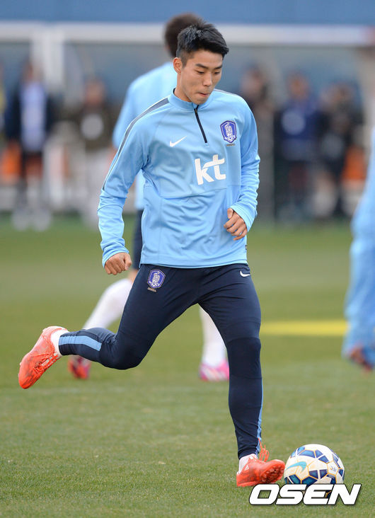 25일 오후 대전월드컵경기장서 진행된 축구대표팀 오픈 트레이닝에서 이정협이 패스를 시도하고 있다.