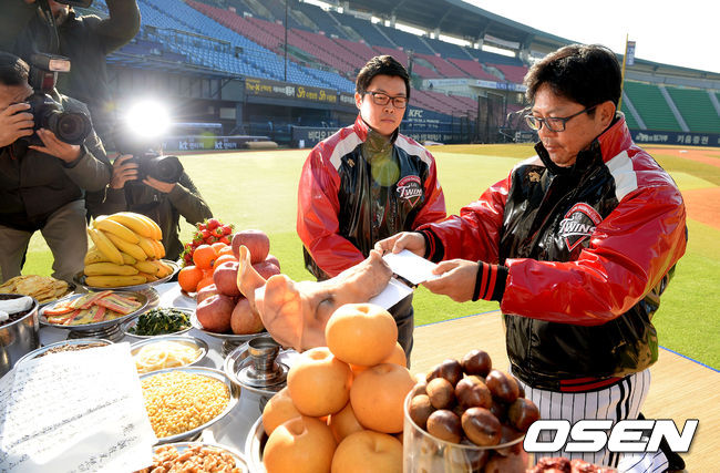 26일 오전 서울 잠실구장에서 LG 트윈스의 2015시즌 승리기원 및 무사안녕 기원제가 열렸다.