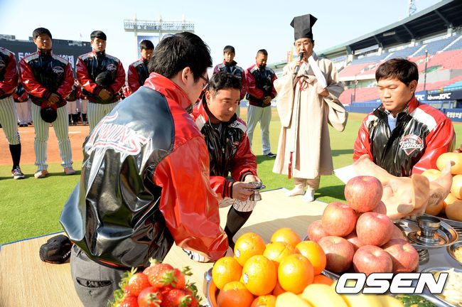 26일 오전 서울 잠실구장에서 LG 트윈스의 2015시즌 승리기원 및 무사안녕 기원제가 열렸다.