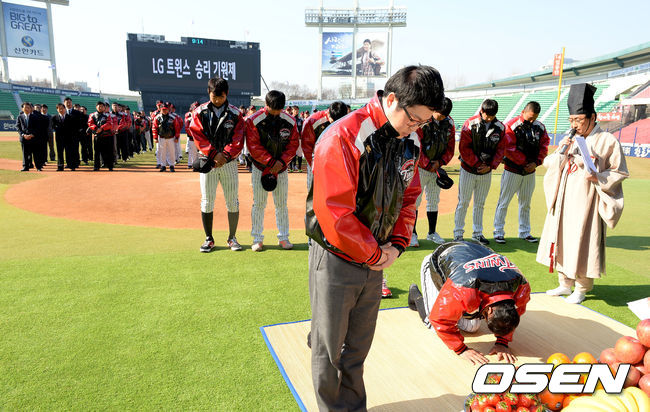 26일 오전 서울 잠실구장에서 LG 트윈스의 2015시즌 승리기원 및 무사안녕 기원제가 열렸다.