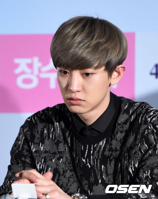 엑소 찬열이 취재진의 질문을 듣고 있다.