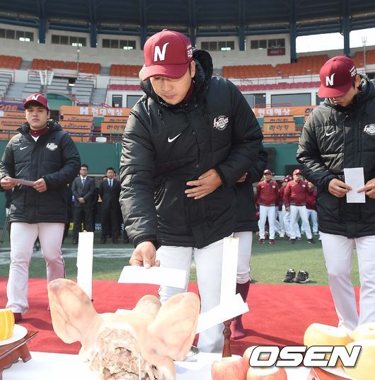 넥센 대표선수로 나선 서건창, 이택근, 박동원, 손승락이 고사를 지내고 있다.