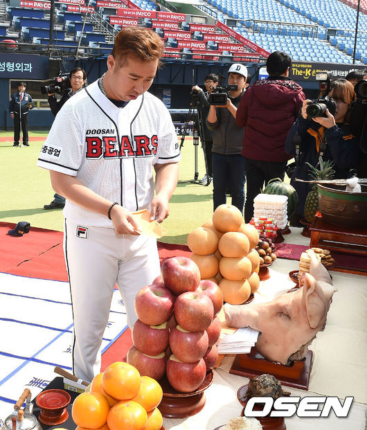 27일 오전 서울 잠실구장에서 두산 베어스의 2015시즌 우승 및 안전 기원제가 열렸다.