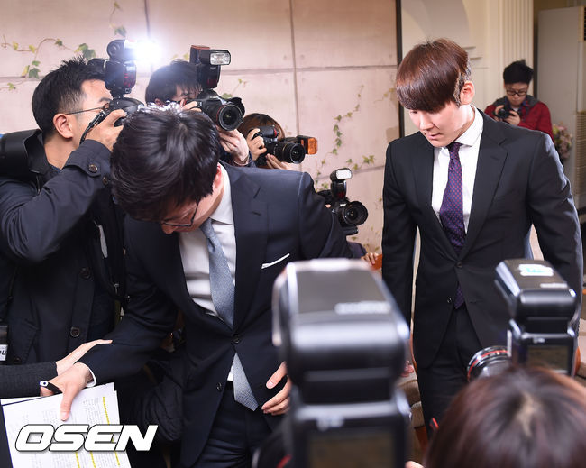 [OSNE=박준형 기자] 27일 오후 3시 서울 송파구 잠실관광호텔 지하 1층 연회장에서 진행된 박태환 기자회견에서 박태환이 퇴장하고 있다.