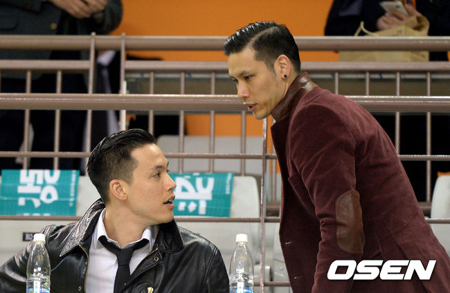 경기에 앞서 동부 이승준과 삼성 이동준 형제가 관중석에서 이야기를 나누고 있다.