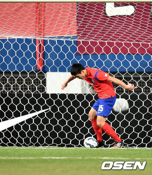 포백 라인은 윤석영(퀸스 파크 레인저스)와 곽태휘(알 힐랄), 김기희(전북 현대), 정동호(울산 현대)로 구성됐다. 골키퍼 장갑은 김승규(울산 현대)가 차지했다.