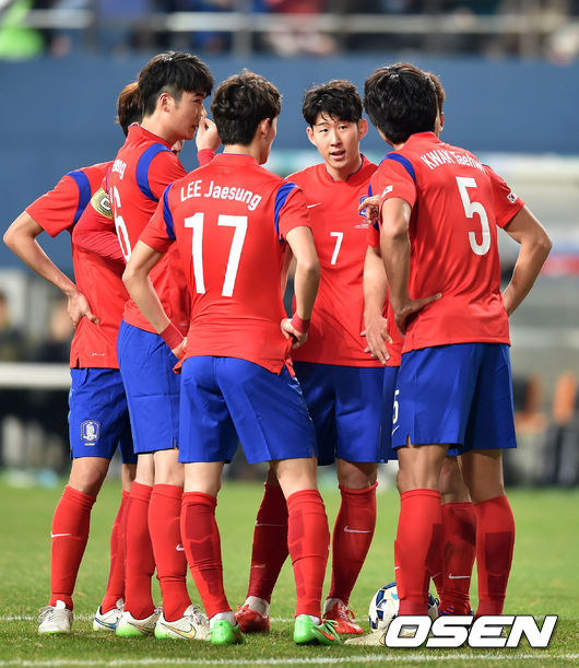 포백 라인은 윤석영(퀸스 파크 레인저스)와 곽태휘(알 힐랄), 김기희(전북 현대), 정동호(울산 현대)로 구성됐다. 골키퍼 장갑은 김승규(울산 현대)가 차지했다.
