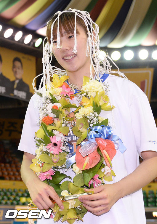 경기종료 후 MVP로 선정된 우리은행 박혜진이 그물을 자른뒤 포즈를 취하고 있다./ soul1014@osen.co.kr