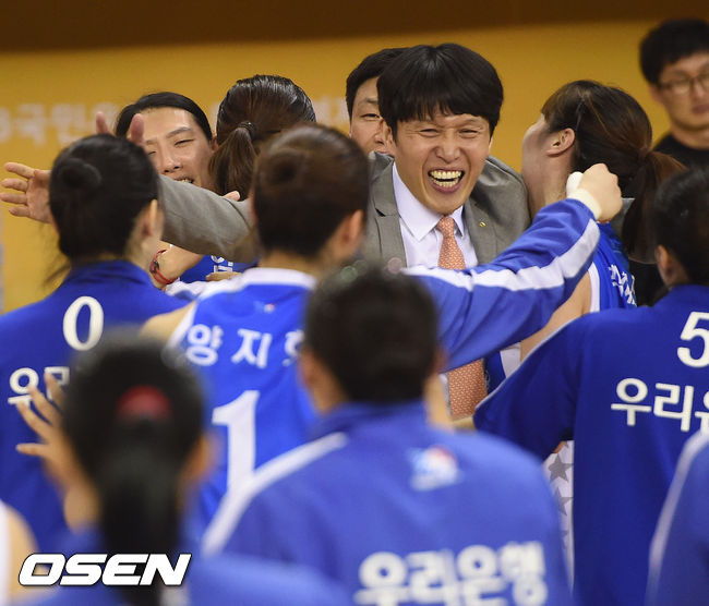 경기종료 후 위성우 감독이 선수들과 포옹을 하고 있다. / soul1014@osen.co.kr
