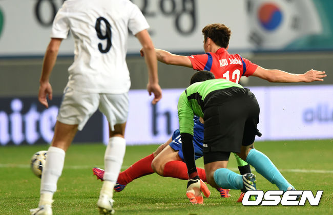 27일 오후 대전월드컵경기장에서 열린 한국과 우즈베키스탄의 평가전 후반 한국 구자철이 우즈벡의 골망을 흔들었지만 오프사이드 판정을 받고 있다.