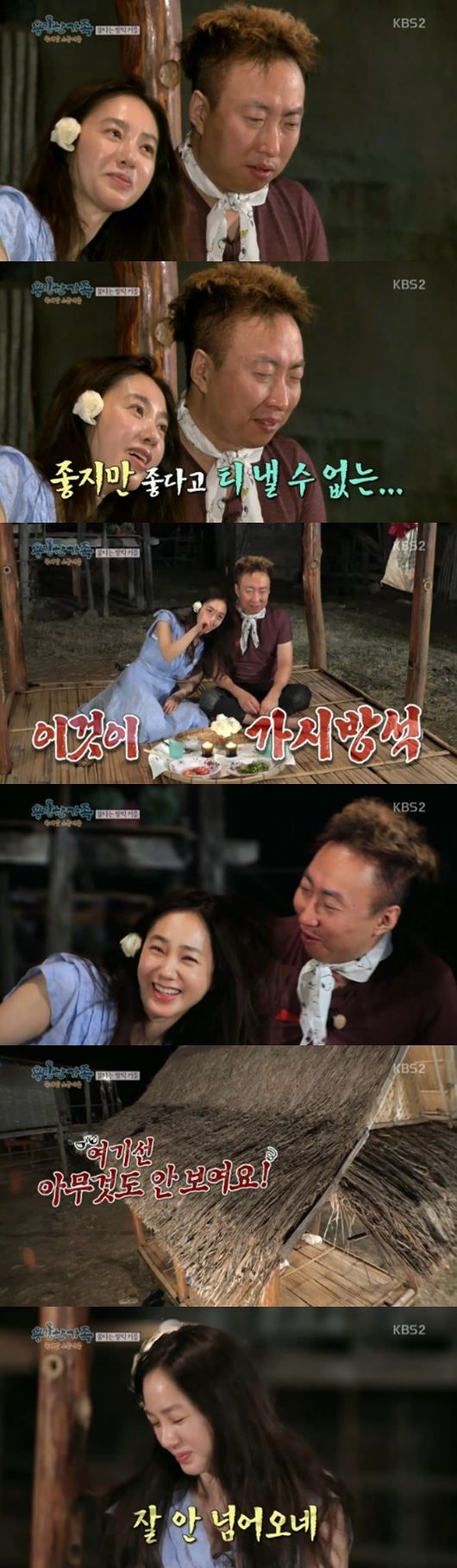 이날 박명수와 박주미는 나머지 가족들이 시내에 놀러가자 단 둘만의 시간을 가졌다. 특히 박주미는 “상황극을 만들어보자”며 박명수를 옆으로 앉힌 뒤 그의 어깨에 기댔다.