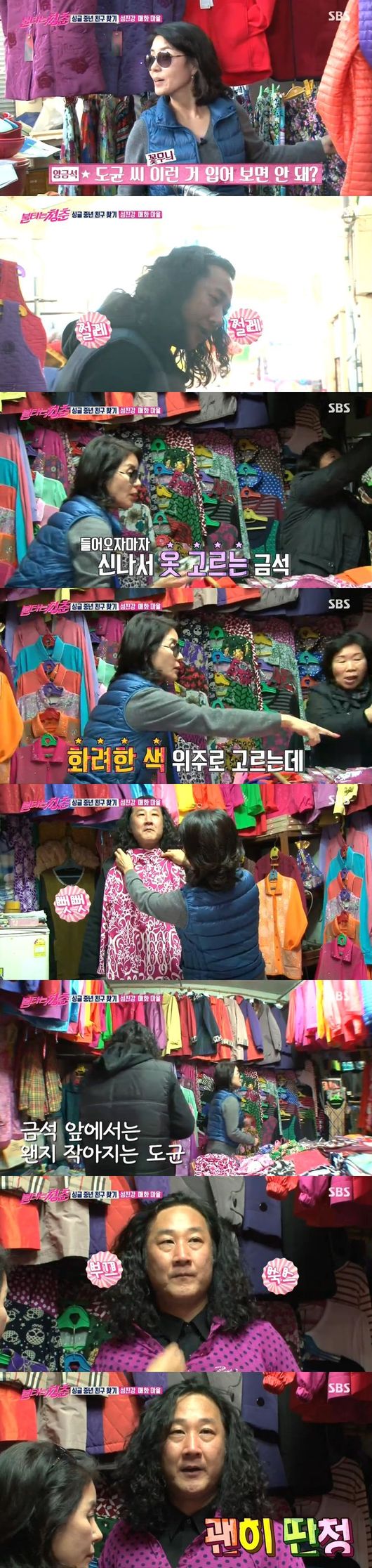 이날 양금석과 김도균은 둘만의 시간을 보내기에 나섰고, 함께 시장을 찾았다. 늘 검은색 의상을 고집하는 김도균에게 양금석은 화려한 색상의 옷을 골라 입혔고, "나 만날 때 입고 오라"고 말해 핑크빛 분위기를 연출했다.