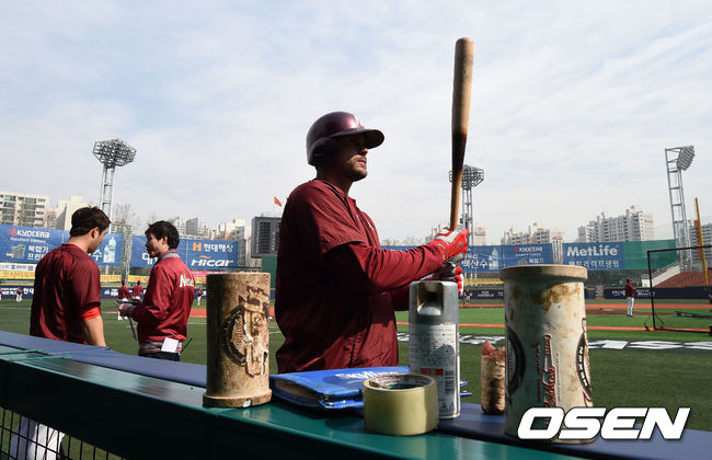경기에 앞서 넥센 스나이더가 훈련을 하고 있다.