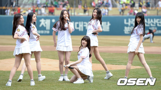 28일 오후 광주 광주-KIA챔피언스필드에서 '2015 타이어뱅크 KBO 리그' 개막전 KIA와 LG의 경기에 앞서 걸그룹 여자친구가 축하공연을 펼치고 있다.