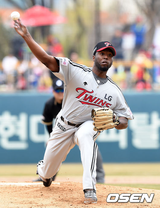 28일 오후 광주 광주-KIA챔피언스필드에서 '2015 타이어뱅크 KBO 리그' 개막전 KIA와 LG의 경기, 1회말 무사에서 LG 선발투수 소사가 힘차게 공을 던지고 있다.