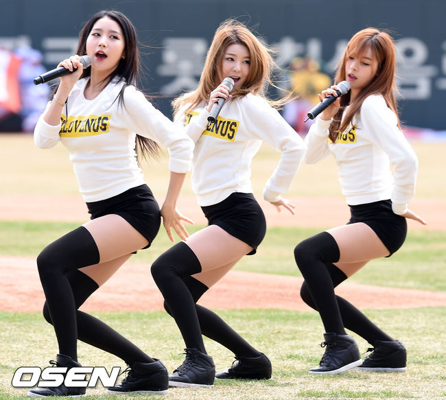 28일 오후 부산 사직구장서 열린 '2015 타이어뱅크 KBO 리그' 개막전,식전행사서 걸그룹 헬로비너스가 축하공연을 펼치고 있다.
