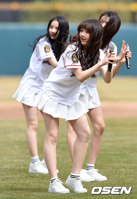 28일 오후 광주 광주-KIA챔피언스필드에서 '2015 타이어뱅크 KBO 리그' 개막전 KIA와 LG의 경기에 앞서 걸그룹 여자친구가 축하 공연을 펼치고 있다.