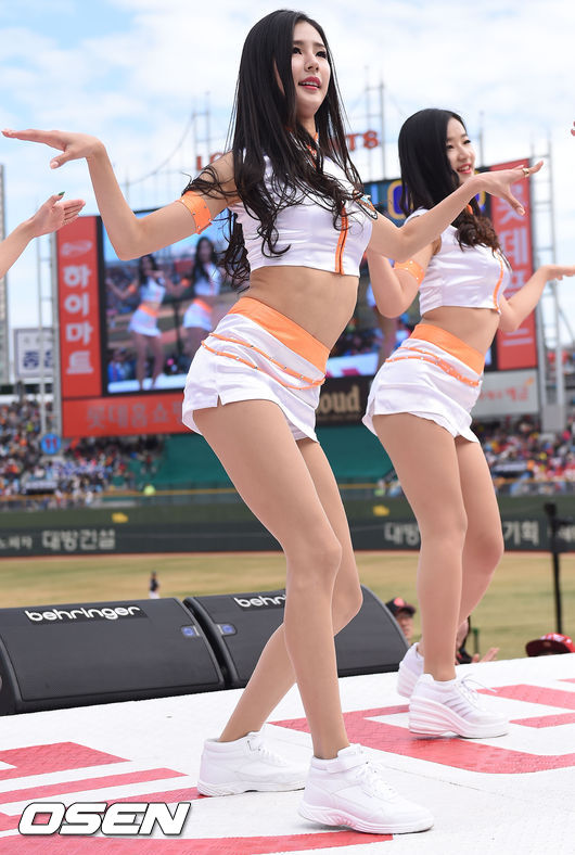 28일 오후 부산 사직구장서 열린 '2015 타이어뱅크 KBO 리그' 롯데 자이언츠와 kt위즈의 개막전,롯데 치어리더 박기량이 멋진 무대를 펼치고 있다.