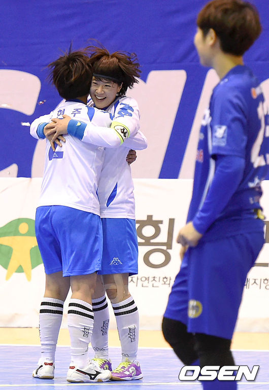 28일 오후 강원도 횡성군민체육센터에서 '현대해상 2014-2015 FK리그' 여자부 FS서울과 부산카파FC의 결승 2차전 경기, 후반전 종료직전 FS서울의 골망을 흔든 부산카파FC의 버저비터로 최종스코어 7-7로 무승부를 기록했다.