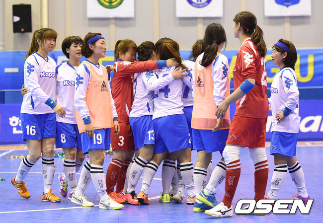 28일 오후 강원도 횡성군민체육센터에서 '현대해상 2014-2015 FK리그' 여자부 FS서울과 부산카파FC의 결승 2차전 경기, 후반전 종료직전 FS서울의 골망을 흔든 부산카파FC의 버저비터로 최종스코어 7-7로 무승부를 기록했다.