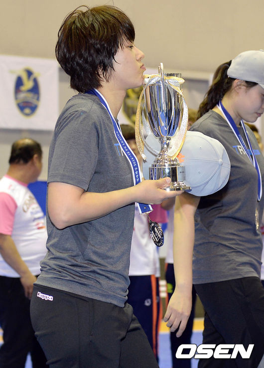 시상식 종료후 준우승을 차지한 부산카파FC 김유정이 트로피를 들고 이동하고 있다./greenfield@osen.co.kr