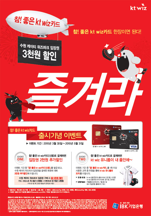 한편, 참! 좋은 kt wiz카드는 오는 30일부터 IBK 기업은행 전국 모든 지점에서 발급할 수 있다.