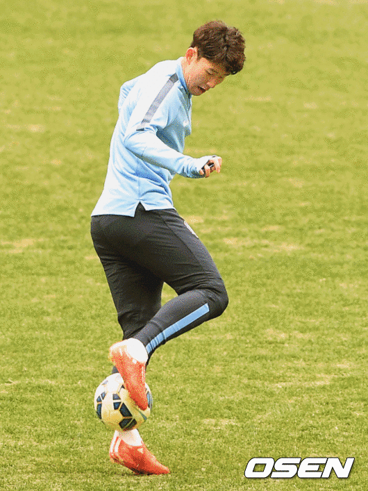 [OSEN=서울월드컵경기장, 정송이 기자 ]29일 오전 서울 월드컵경기장서 진행된 축구대표팀 오픈 트레이닝에서 손흥민이 축구공을 가지고 몸을 풀고 있다.