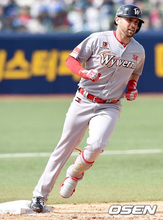 1회초 SK 공격 1사 만루 상황 브라운이 선제 만루포를 날리고 그라운드를 돌고 있다.
