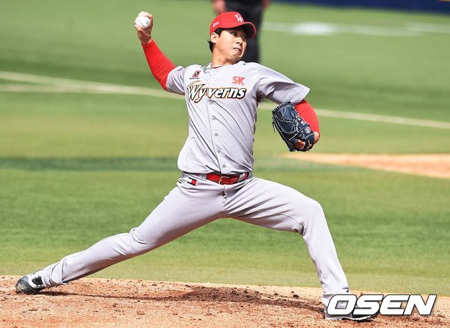 SK 선발 윤희상이 힘차게 공을 뿌리고 있다.
