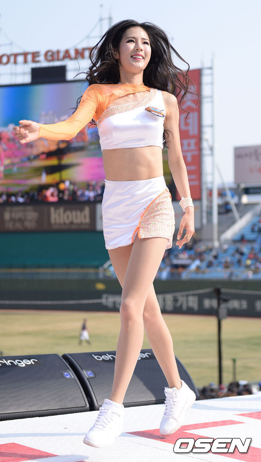 29일 오후 부산 사직구장서 열린 '2015 타이어뱅크 KBO 리그' 롯데 자이언츠와 kt위즈의 경기, 롯데 치어리더 박기량이 멋진 무대를 펼치고 있다